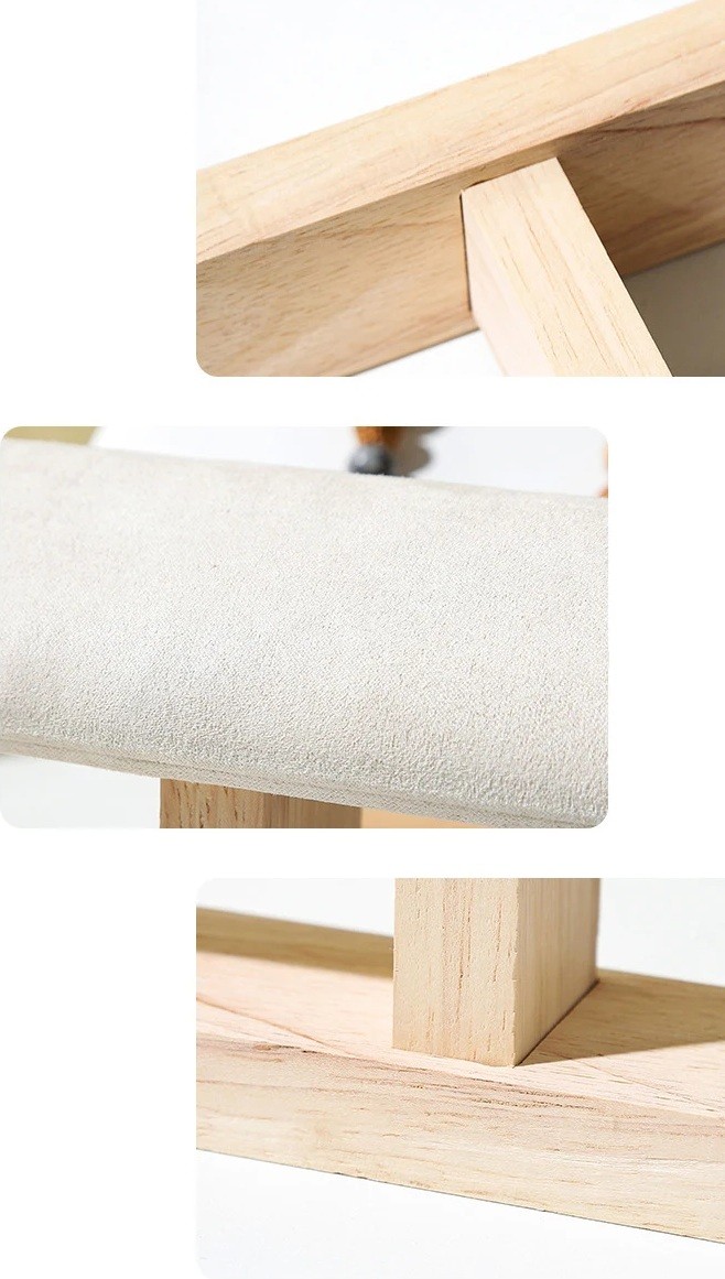 Az állvány alapját fából készült talapzat képezi, amely stabilitást biztosít a használat során. A talapzaton egy függőleges oszlop található, amelyre egy vízszintes tartó van rögzítve az ékszerek függesztésére.