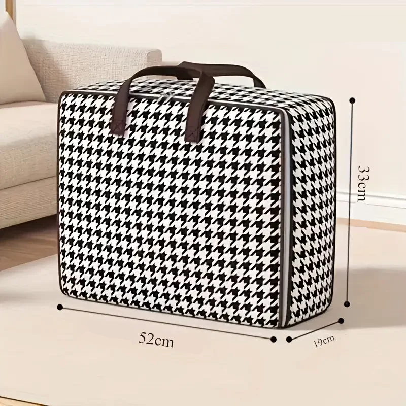 Praktikus tárolótáska 36 literes űrtartalommal ideális megoldás a dolgok rendezett és helytakarékos tárolására otthon. A 52 × 19 × 33 cm méretekkel elegendő helyet biztosít ruhák, takarók, játékok vagy szezonális kiegészítők számára. Tartós és vízálló textil anyagból készült, amely megvédi a tartalmát a portól és a nedvességtől. A táska masszív fülekkel van ellátva, amelyek megkönnyítik a szállítást, és könnyen összecsukható, amikor éppen nincs használatban. Tökéletesen illik szekrényekbe, az ágy alá, szekrénybe vagy utazásokra.