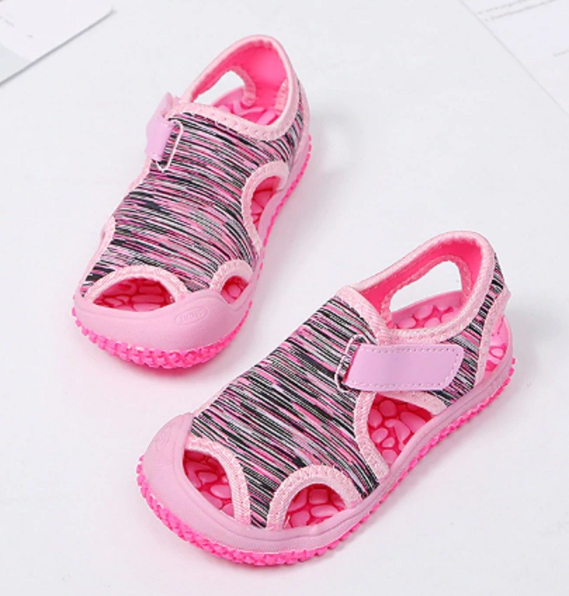 A gyermek tépőzáras szandál megfelelő lábbeli a tó, a tenger és a kert nyaralásához.
