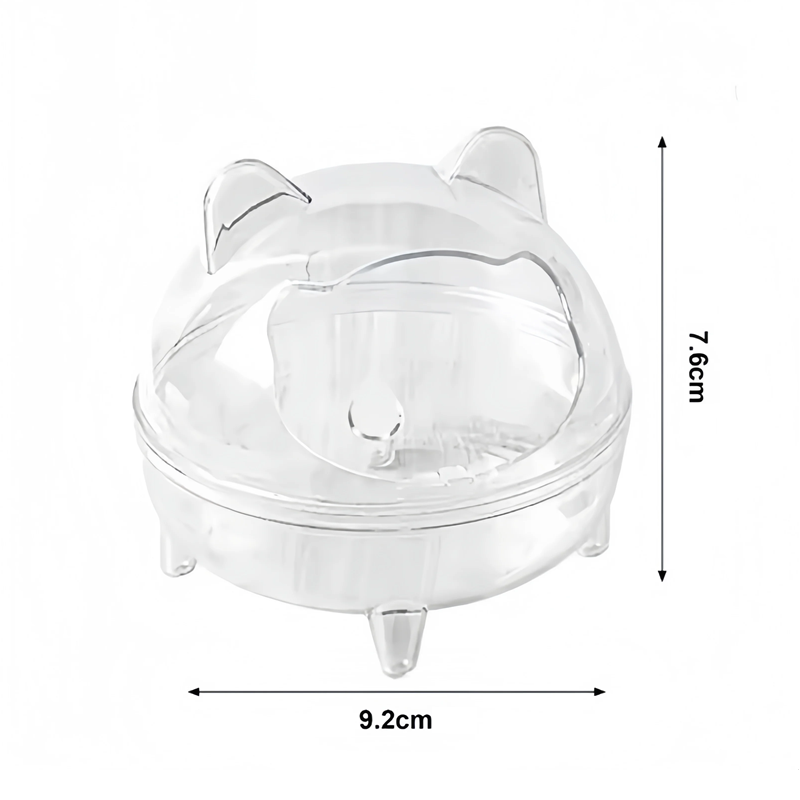 A hörcsögök számára készült átlátszó műanyag vécé praktikus és higiénikus kiegészítő minden rágcsáló ketrecéhez. Lehetővé teszi, hogy kedvence saját helyet kapjon a szükségletei elvégzésére, ami jelentősen megkönnyíti a ketrec tisztán tartását és csökkenti a szagokat. Az átlátszó dizájn révén könnyen látható, mikor szükséges a takarítás. A kompakt 9,6 x 7,2 cm-es méretek biztosítják, hogy a vécé még kisebb helyekre is elfér, és ideális homokhoz.