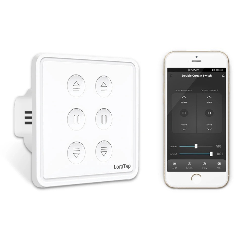 Ez az okos fali kapcsoló két külön motoros függöny vagy redőny vezérlésére szolgál egy helyről. Lehetővé teszi a kényelmes irányítást a falon lévő gombokkal, mobilalkalmazással vagy hangasszisztensekkel. A WiFi csatlakozás révén a kapcsoló közvetlenül csatlakozik a háztartási hálózathoz, és nem igényel további vezérlőegységet. A modern dizájn EU 86 × 86 mm méretben alkalmas a szokásos elektromos dobozokhoz. A kapcsoló hosszú távú és biztonságos működésre van tervezve a háztartásban.