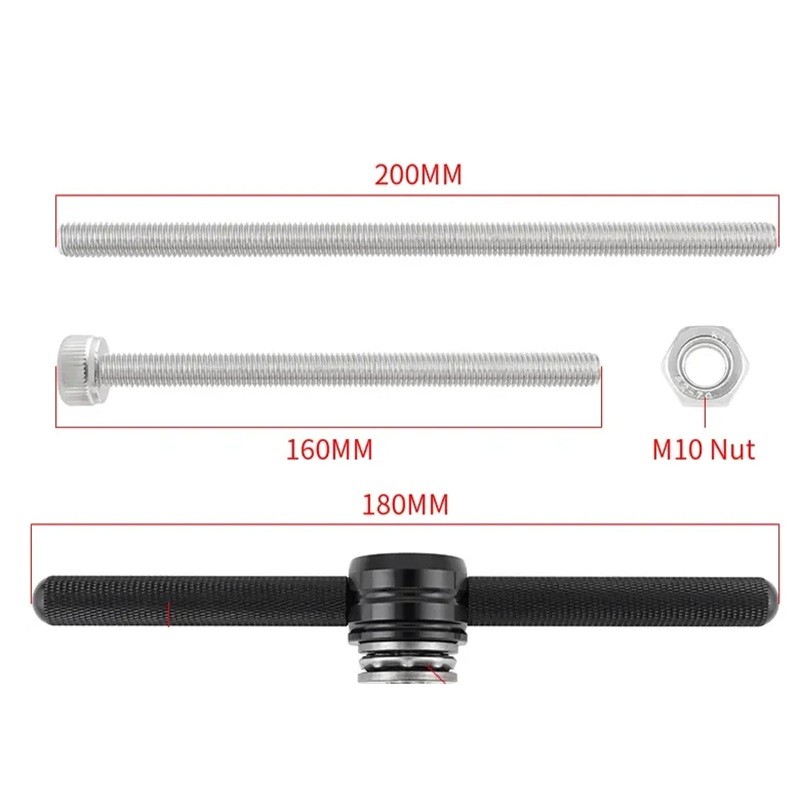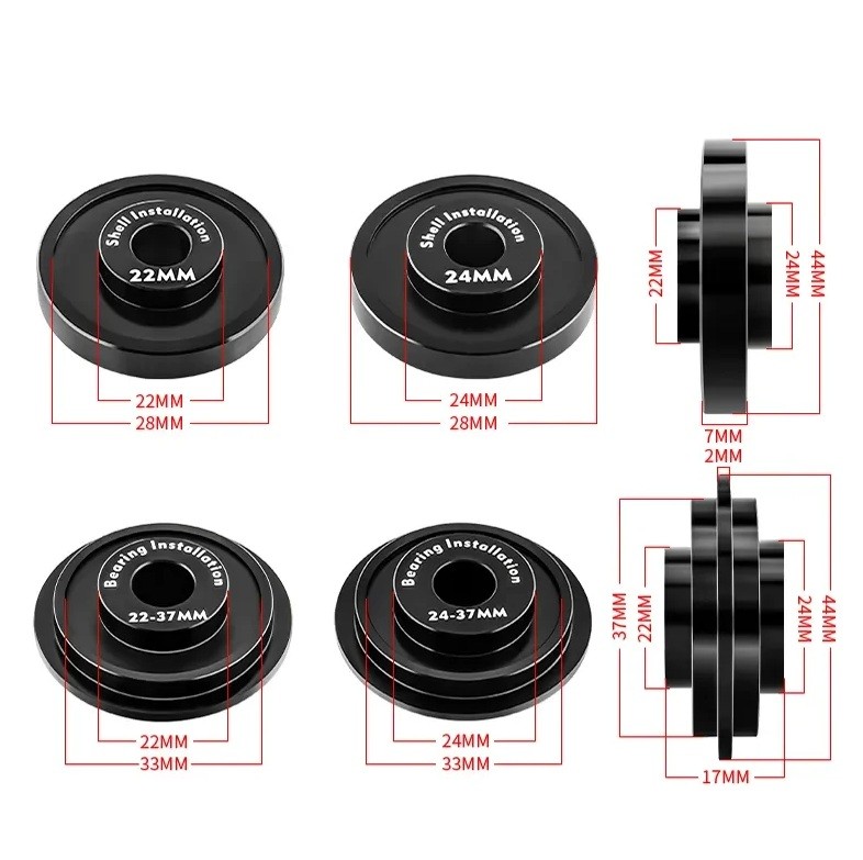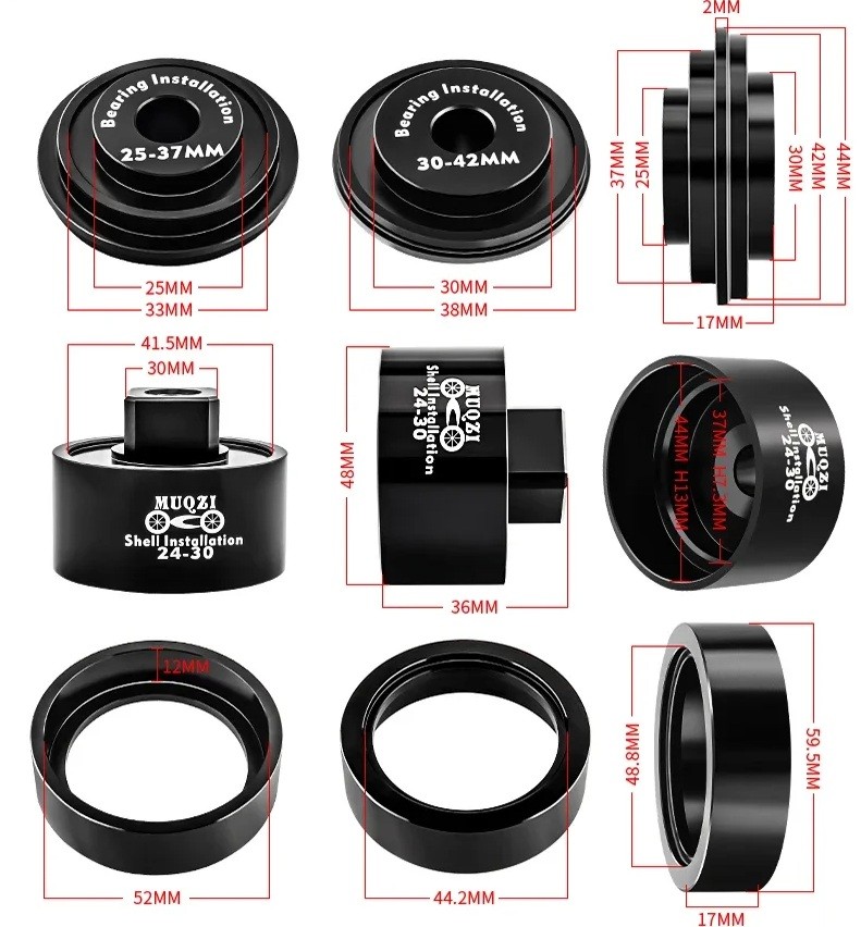 A készlet lehetővé teszi a csapágyak, középcsészék, adapterek és anyák egyszerű préselését, valamint biztonságos eltávolítását anélkül, hogy a vázat vagy a meneteket megsértené. A csapágymechanizmus használatának köszönhetően a munka simán zajlik, ütések vagy kalapács nélkül.