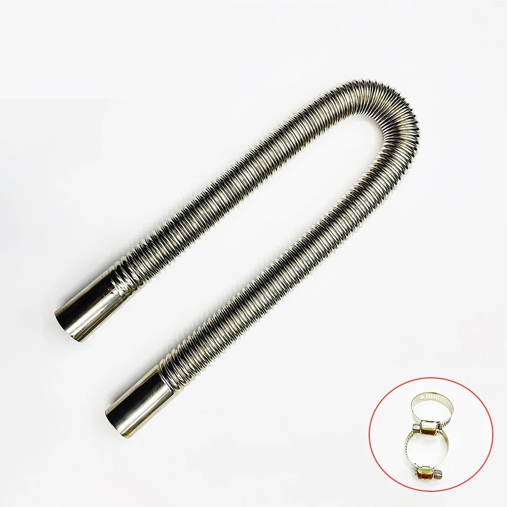 A telepítés egyszerű és gyors. Csak annyit kell tennie, hogy a csövet a fűtés kimenete és a kipufogórendszer közé helyezi, majd rögzíti a mellékelt bilincsel, amely biztosítja a biztonságos és szilárd kapcsolatot. A termék kompatibilis az Eberspacher Airtronic D2, D4, D4S, D1LC, D1LC Compact, D3LC és D5LC modellekkel.