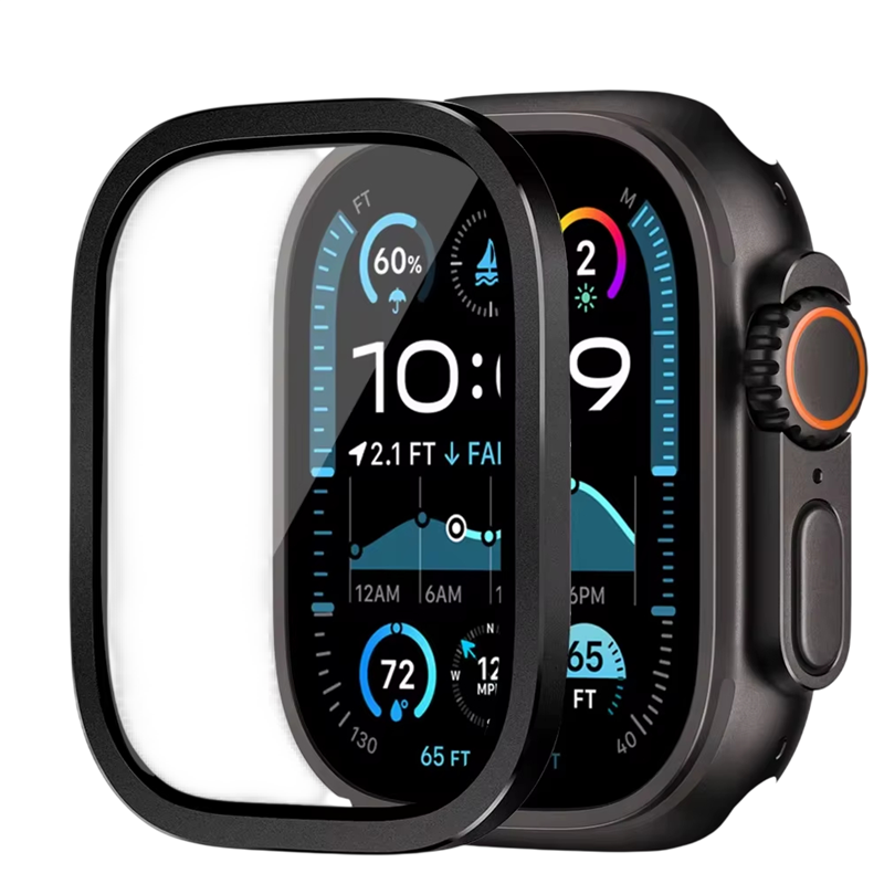 Ez a védőtok edzett üveggel praktikus védelmet nyújt az Apple Watch Ultra 2 kijelzőjének a mindennapi használat során. A masszív üveg segít megvédeni a képernyőt a karcolásoktól és apró ütésektől. A fém keret egyben védi az óra széleit és segít csökkenteni a sérülés kockázatát, amikor a kemény felületekkel véletlenül érintkezik. A precíz kidolgozásnak köszönhetően a tok tökéletesen illeszkedik, és megőrzi az óra teljes funkcionalitását. Ha megbízható védelmet keres a kijelző és a keret számára, ez a tok megfelelő választás.