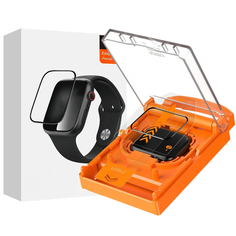 A fólia az Apple Watch Series SE, 4, 5 és 6 modellekkel való kompatibilitásra lett tervezve. A telepítőkeret kialakítása segít a védőüveg helyes igazításában a kijelzőhöz. A készlet része egy poreltávolító elem is, amely segít a kijelző tisztán tartásában a telepítés előtt.