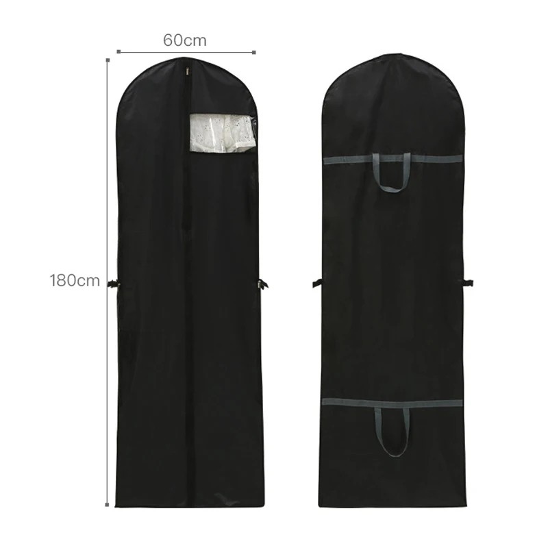 A védőborítás ruhákhoz mérete 180 cm × 60 cm, amely biztonságos tárolást biztosít hosszú ruhák, például ruhák, kabátok vagy ünnepi öltözetek számára. A borítás erős anyagból készült, amely védelmet nyújt a por és a nedvesség ellen. A praktikus átlátszó ablak lehetővé teszi a tárolt ruházat gyors azonosítását anélkül, hogy a borítást ki kellene nyitni. A felső nyílásnak köszönhetően könnyen behelyezhető a vállfa, és a ruha felakasztható a szekrénybe. A hosszú fém cipzár megkönnyíti a kezelést és a gyors nyitást és zárást.
