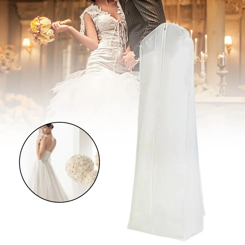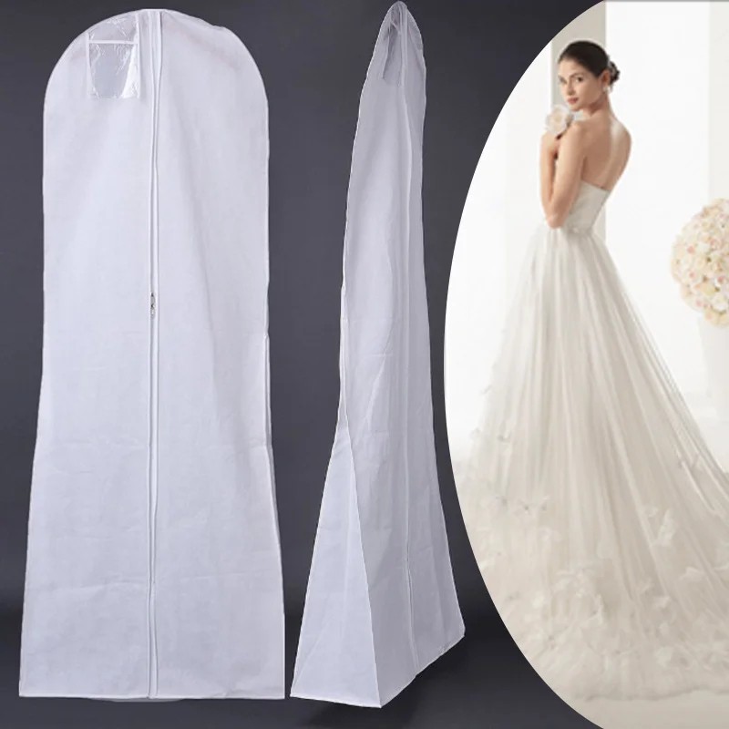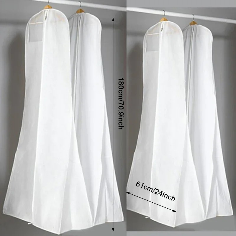 Védőtok ruhákhoz 180 x 61 cm Fehér esküvői és hosszú alkalmi ruhákhoz Porvédő tok cipzárral és névtartó zsebbel