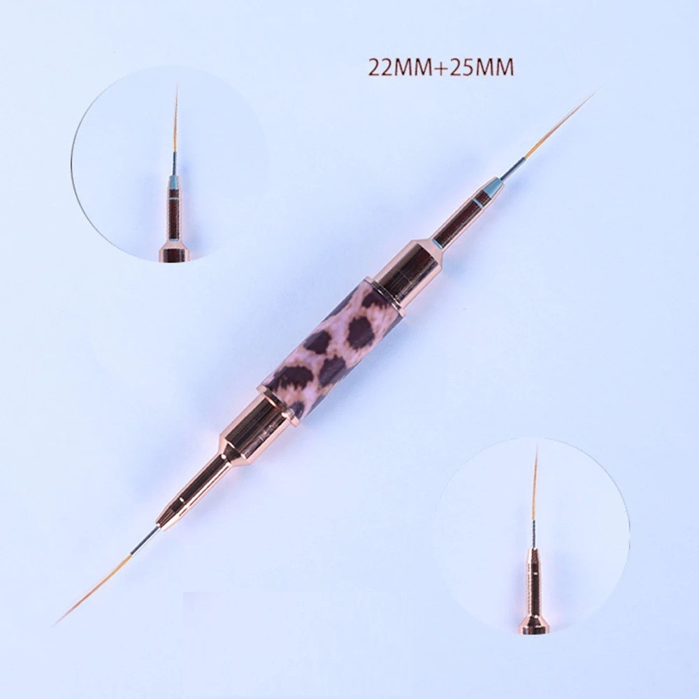 Vékony, kétoldalas körömecset 22 mm + 25 mm Leopárd mintás ecset a részletes vonalrajzoláshoz, köröm művészet, finom részletek festése
