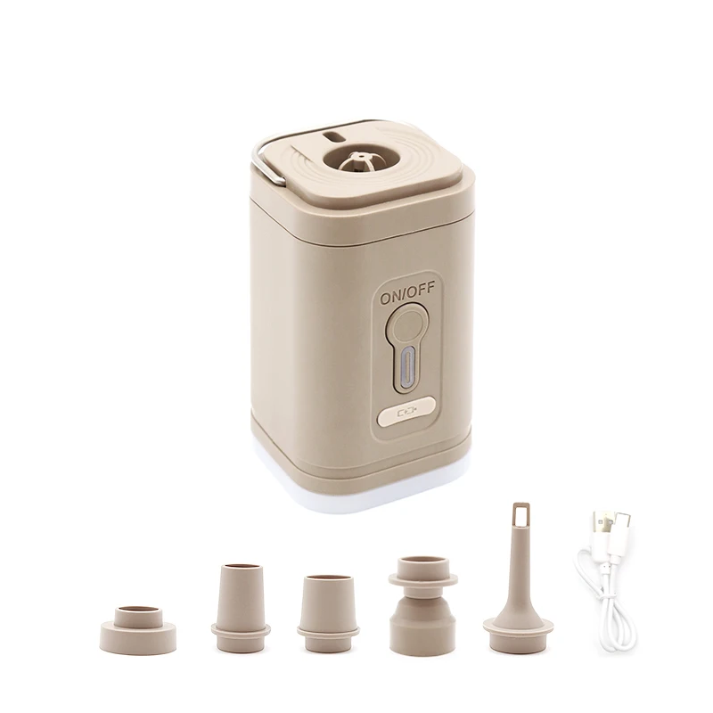 Főoldal Főoldal Sport és túra Kemping és túra Utazási kiegészítők Vezeték nélküli légkompresszor 8,35 x 9,45 cm LED lámpával 3 üzemmóddal 5 fúvókával USB töltés Hordozható pumpa kerékhez autóhoz labdához