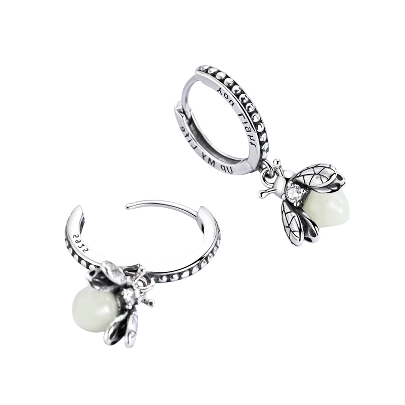 Ez a szentjánosbogár fülbevaló 925 sterling ezüstből készült nőknek, és luminiscenszáló kővel van díszítve, amely ragyog a sötétben. Ez a lenyűgöző hatás vonzza a tekinteteket, és varázslatos légkört teremt, ideális éjszakai eseményekhez vagy alkalmakhoz, amikor egy csipetnyi titokzatosságot és szépséget szeretne hozzáadni megjelenéséhez. A luminiscenszáló kő napközben feltöltődik, és éjszaka finom fényt bocsát ki, ami ezeket a fülbevalóat kivételes ékszerré teszi, amely különböző stílusokhoz és alkalmakhoz illik.