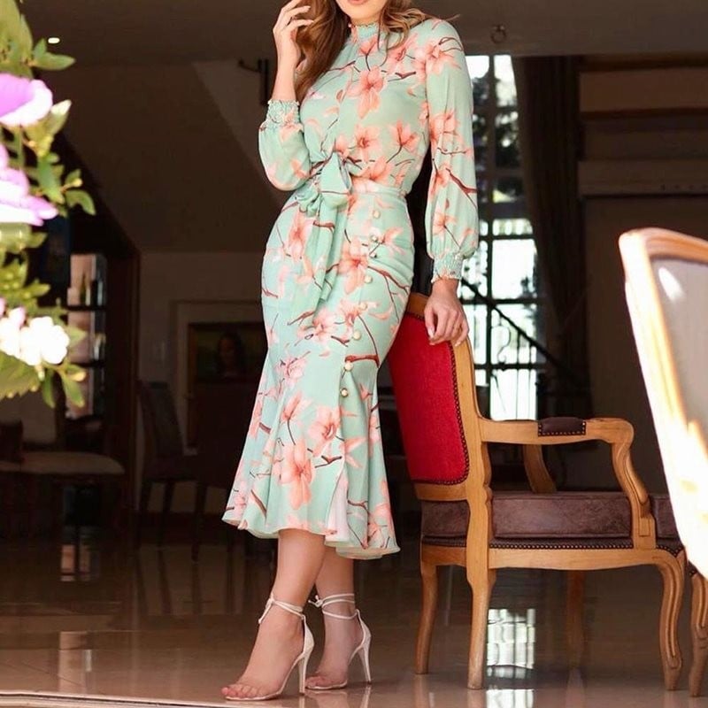 Virágos ruha a nyakáig