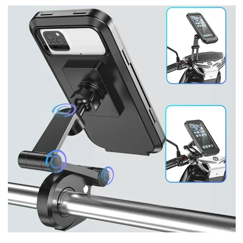 Ez az univerzális telefon tartó a mobiltelefon biztonságos és kényelmes használatára lett tervezve motorozás és kerékpározás közben. ABS műanyag, TPU és nylon szálak kombinációjából készült, ami magas szilárdságot, tartósságot és hosszú élettartamot biztosít. A tartó vízálló tokkal rendelkezik érintőképernyőhöz, így a telefont esőben is használhatjuk anélkül, hogy ki kellene venni. A tok belsejében egy integrált mágneses rendszer található, amely rögzíti a telefont, hogy az ne mozduljon el egyenetlen úton sem.