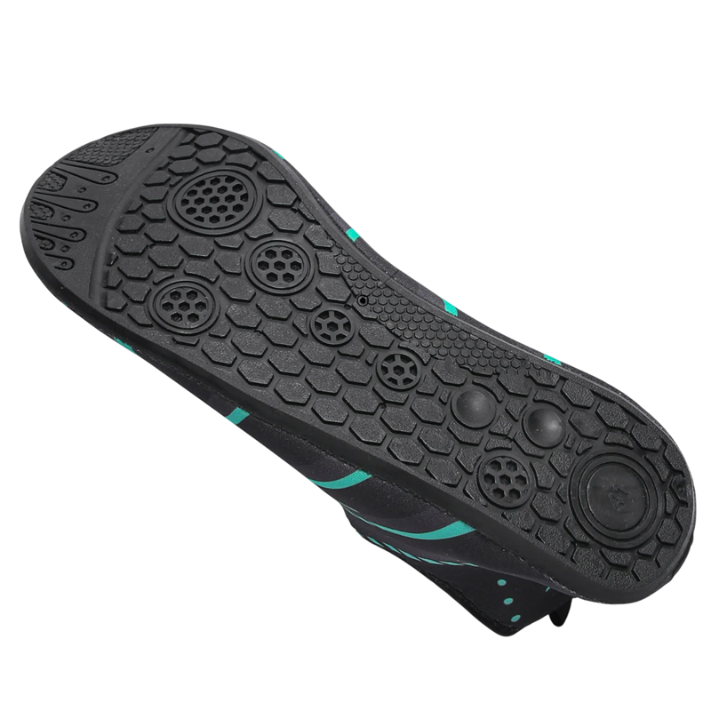A talp ellenálló gumitalpból készült, amely megvédi a lábakat az éles kövektől, kagylóktól vagy forró homoktól. A speciális csúszásmentes talpkezelés növeli a stabilitást a csúszós felületeken a medence körül vagy a nedves köveken a tengerparton. A cipők könnyűek, kompaktak és könnyen elférnek a hátizsákban vagy a strandtáskában.