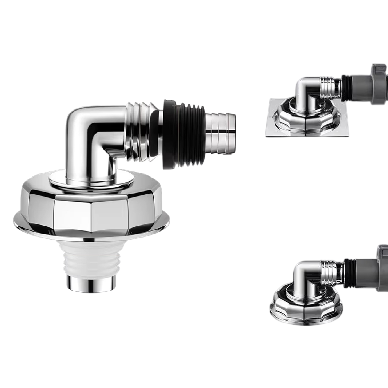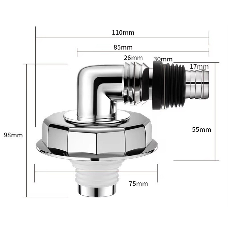 Zahnutó padlólefolyó csatlakozó, krómozott, univerzális tömlőadapter mosogatógéphez és hulladékdarálóhoz, gravitációs leöblítés