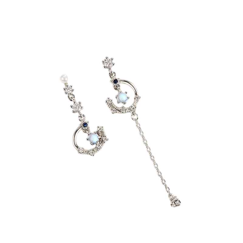 Zirkon ásványi lunáris viselő fülbevaló hold- és csillagmotívumokkal, luxus hosszú fülbevaló nőknek, az inspiráció és a személyes átalakulás szimbóluma